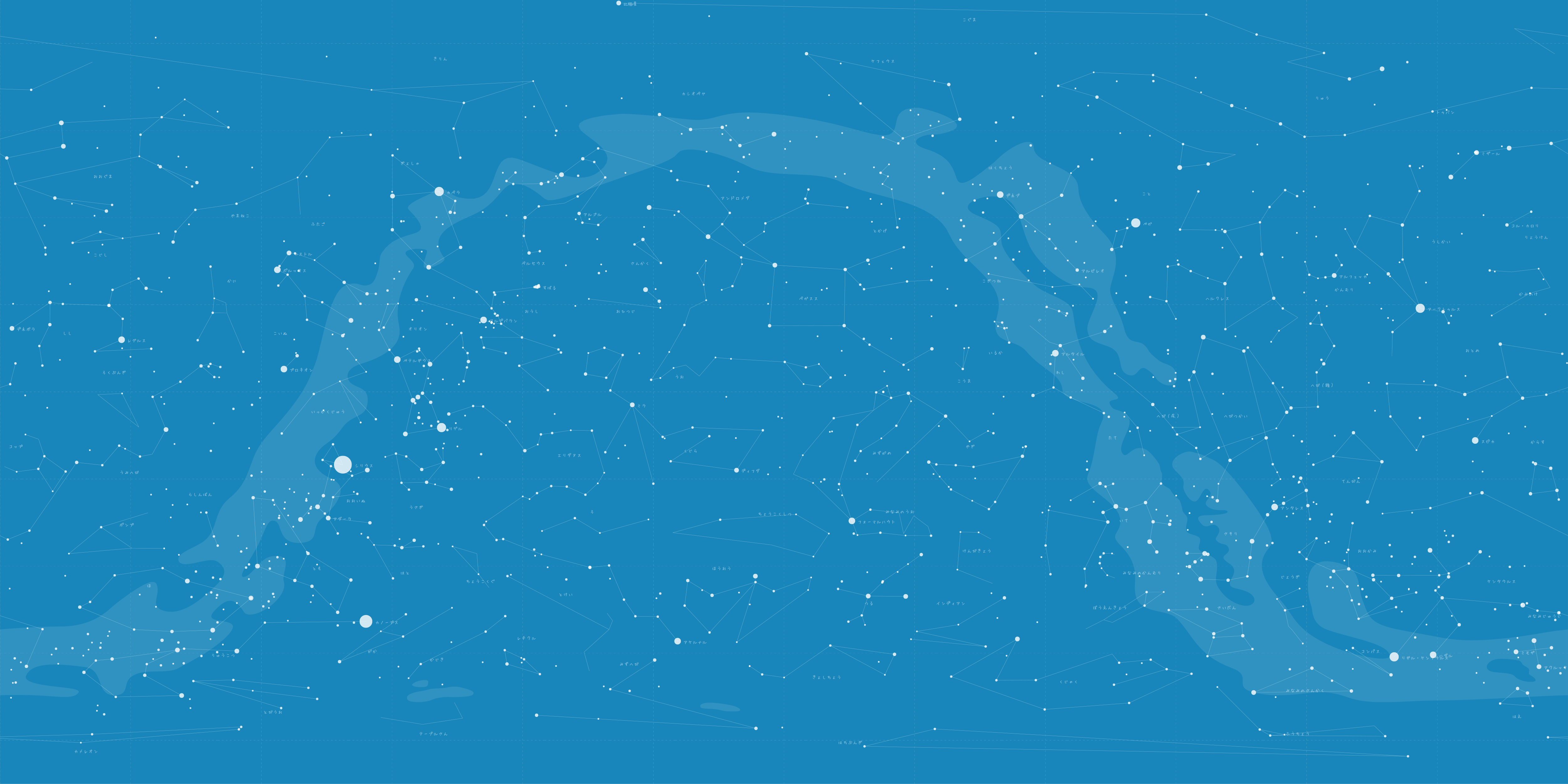 ※クリックで拡大(5000px × 2500px)星空ブックカバーでは、1等星の数や2等星の個数が一般的に言われている数と異なります。星の描画にSAO Star Catalogを用いている為です。